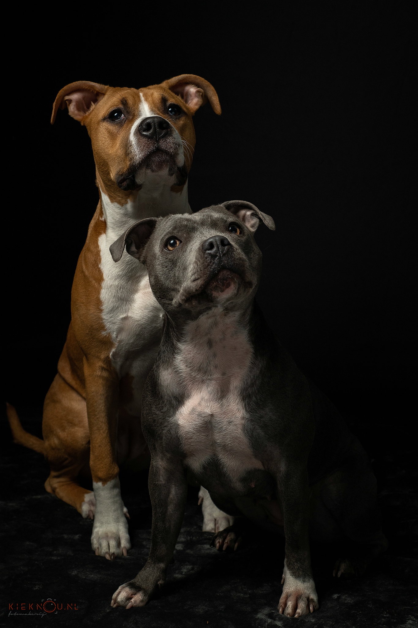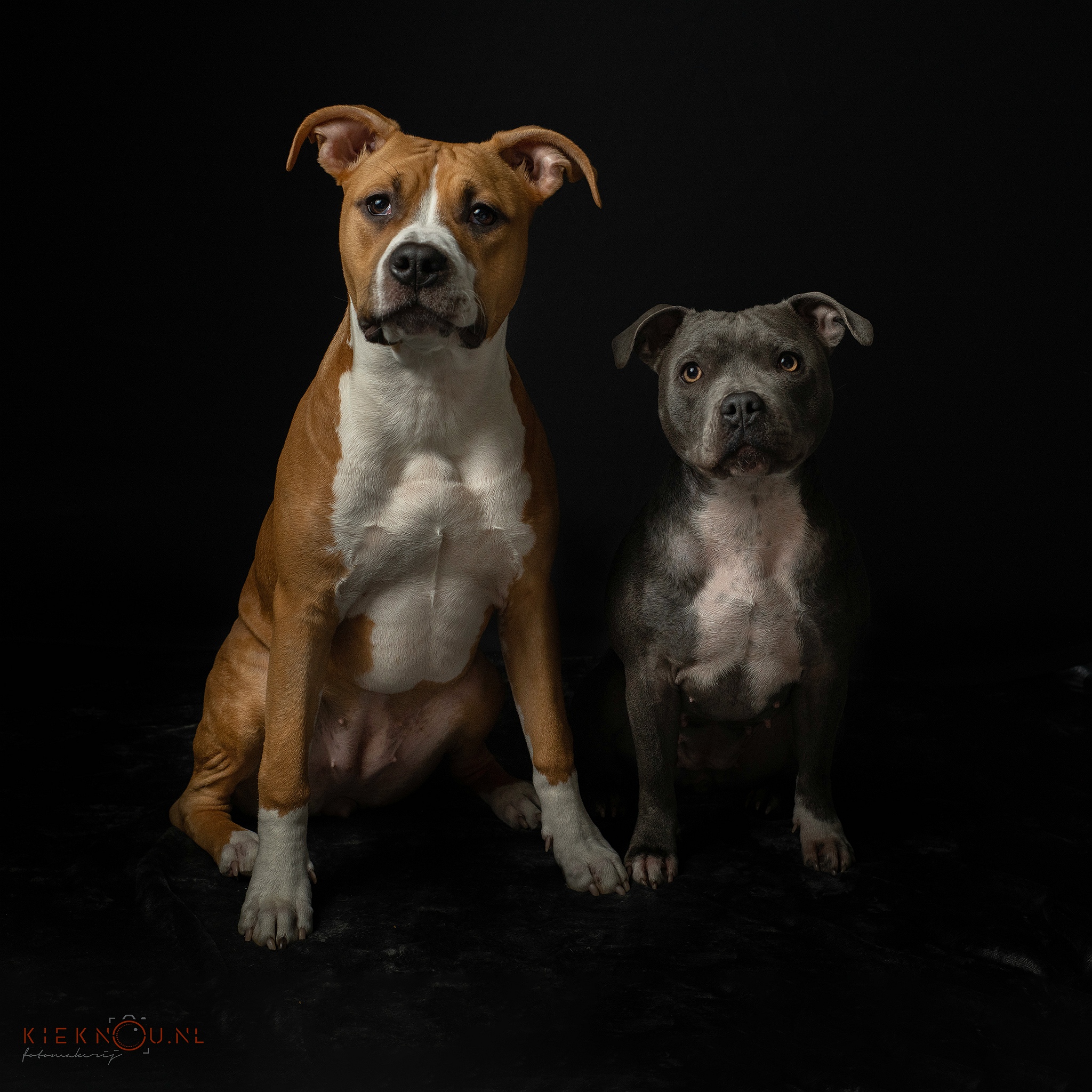 Willow (Engelse Stafford) en Ruby (Amerikaanse Stafford) gaan er even voor zitten.